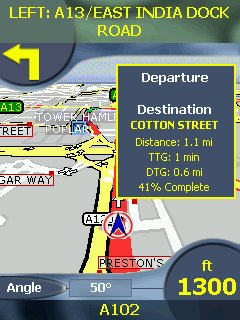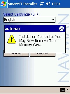 The MMC card contains the application software. It couldn't be easier to install, either. Once you've gone through the usual PPC setup procedure, just insert the MMC card. You are immediately presented with the option to install the software, and as the MMC card is tied to the particular PiN with which it ships, no Internet activation is necessary. The card has maps of Southern England, Paris and one of the Italian areas (can't remember which) since these are apparently the areas where most sales are made.