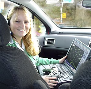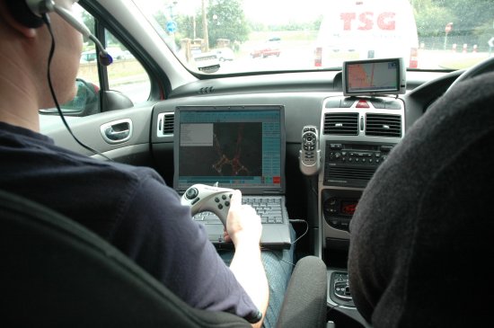 The co-driver (Dan) had full control of the laptop. The GPS data feed coming from the DGPS antenna fixed to the roof continued to plot our position on the map (just like it does in your regular SatNav product) but at a moments notice he could click and record an audio file.