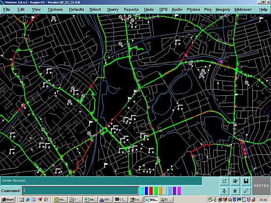 As you can see from the above screenshot, the mapping data looks very basic, and it doesn't need to be flashy at this stage of the process. Mapping an average size town can only take a couple of megabytes of data which makes data storage easy. It's only when it comes further down the chain to the GPS company who will be writing the application to manipulate NAVTEQ's data will the maps be made to look more like maps that we the consumer would like to see.