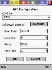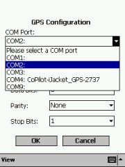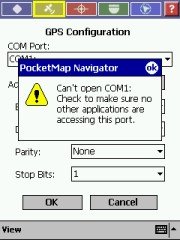 PocketMap Navigator expects a GPS receiver that talks NMEA (the SiRF protocol is not supported), and it scans the COM ports on your Pocket PC, so you should be able to quickly find your device and get it going at the right speed (Baud Rate). Don't touch these "Data Bits", "Parity", and "Stop Bits" settings they have been included for no obvious reason (these are technical settings and do not usually need changing, so for the average user leave these as they are). All current receivers use 8N1.