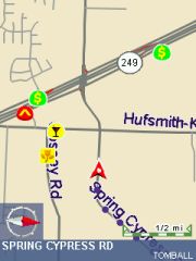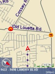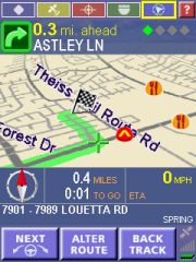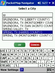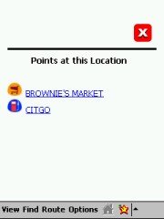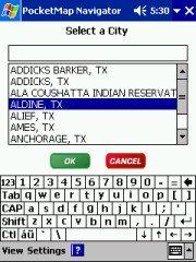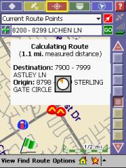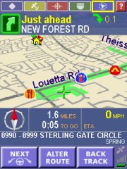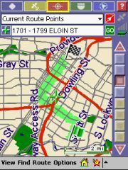 Technical: PocketMap Navigator uses GAPI to draw not just the map but also most of the controls onto the screen. I have no idea why they did that, it certainly hasn't resulted in increased speed. All you will notice is that your screen shots come out mostly blank like some of mine did until I wrote my own little GAPI screenshot routine. The application is fixed to the 240x320 resolution of the Pocket PC. Any attempt to use landscape mode or other resolutions will result in a totally distorted UI. I don't have a Toshiba 800 Pocket PC but I would love to hear from someone who could test PocketMap Navigator on that machine.