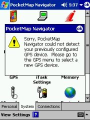On a few occasions PocketMap Navigator seemed to lose the connection to the GPS receiver, possibly related to some main memory shortage. You can try to scan for the GPS receiver manually, or you go for the all encompassing soft-reset to fix that issue. (Sadly enough the soft-reset always helps)