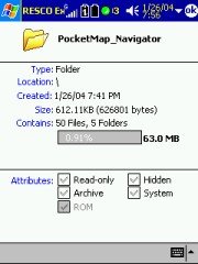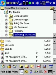 As you can see the results are rather unimpressive. Most of the files get copied into the main memory area ignoring my specified destination, and it needs a fair amount of cleaning up to get them moved to the storage card manually. Some files like the HTML directory cannot be moved at all, PocketMap Navigator refuses to start up when you do that. Maybe Space Machine can address this hard-coding issue in a later release ?