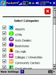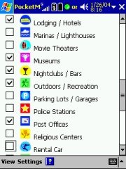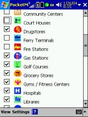 The list of POI's that PocketMap Navigator offers is impressive, and you can check the ones that you want to be displayed on the maps. If multiple POI's are occupying the same space on the map then a summary sign will represent them instead, and tapping on it will tell you which POI's are hidden behind that sign.