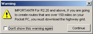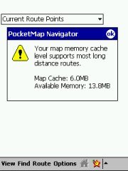 On the Pocket PC you will of course have to make sure you have enough RAM free to hold that route. There is a info screen available that tells you what your memory situation looks like.