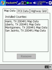 You will find another program on the Pocket PC that is called the PocketMap Data Browser. This little applet will show you what counties you have loaded and how much space they occupy. Same for the POI's and for the highway grid.