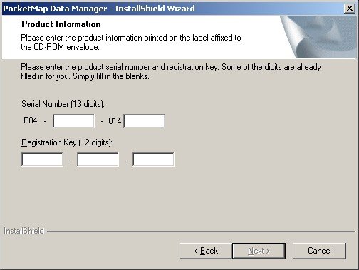 The Installation process begins with the product registration. The serial number and registration key can be found on the back of the first CD cover. This registration is then good for use with all your desktops and Pocket PCs, which is convenient and also makes sense since you will only be using the GPS navigation in one PDA at a time.