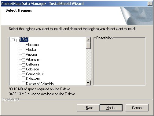 Note: If you missed this part or if you want to copy additional states from CD to your hard disk then you will have to run the PocketMap Data Manager Setup again on the PC.