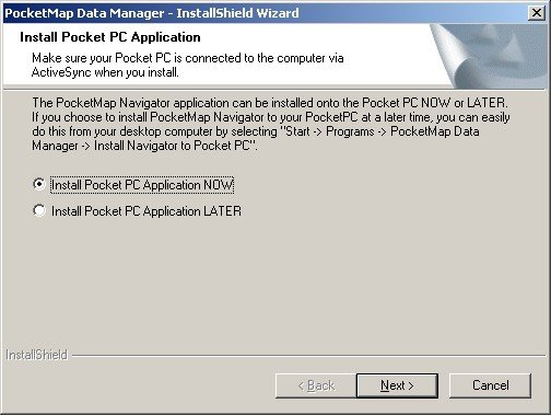 If you can’t wait and are eager to get going with PocketMap Navigator you can now install the Pocket PC part of the application. Or, you can do that later from within the Data Manager. Anyhow - You will have to download maps to make it work, so be patient!