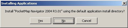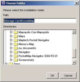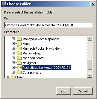 There is a naming inconsistency here, the proposed folder is "PocketMap_Navigator", but your storage card or main memory does already contain a "PocketMap Navigator 2004 R3.01" directory – so I would recommend you use that instead and keep your directory structure clean (although the directory name asks for trouble with future versions, and you may end up with even more directories).