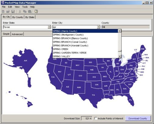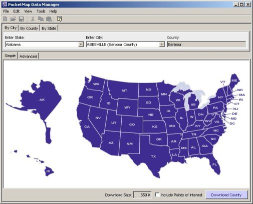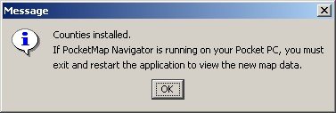 (Technical: If you are adventurous enough you could actually extract the county map components from the state ZIP files on the CD and copy them into the data directory on the Pocket PC. Provided you know your county's number).